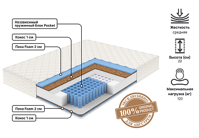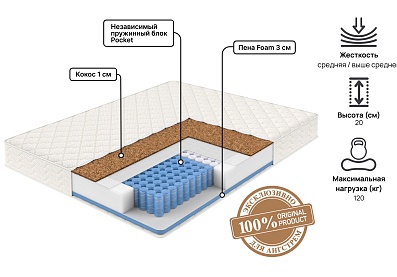 Матрас Free 120 х 200 Разная жесткость сторон с пружинным блоком