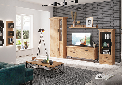 - Мебель выполнена в цвете «дуб бунратти», имитирующем натуральное дерево;